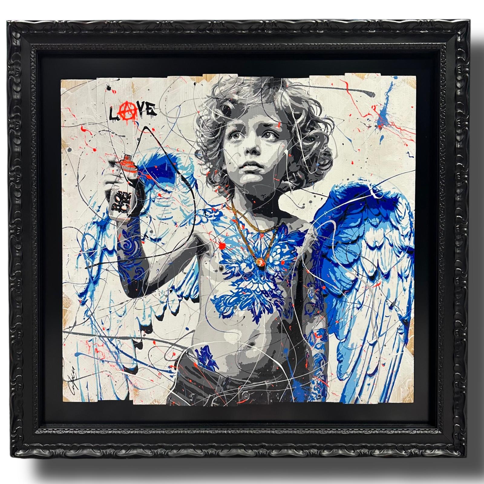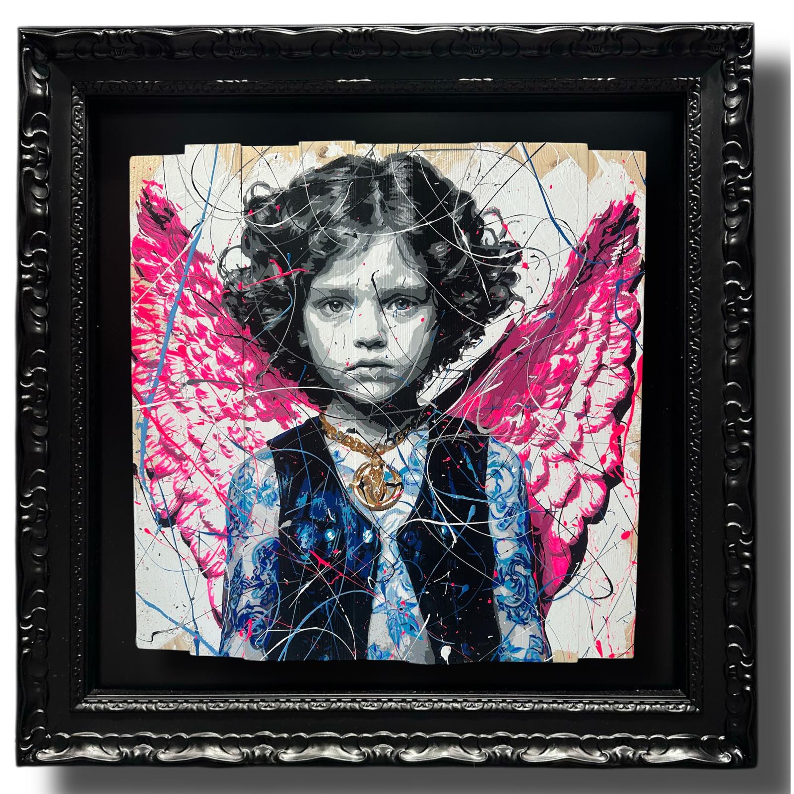 Dimension de l’œuvre : 80 x 80 cm avec encadrement baguette baroque Noire