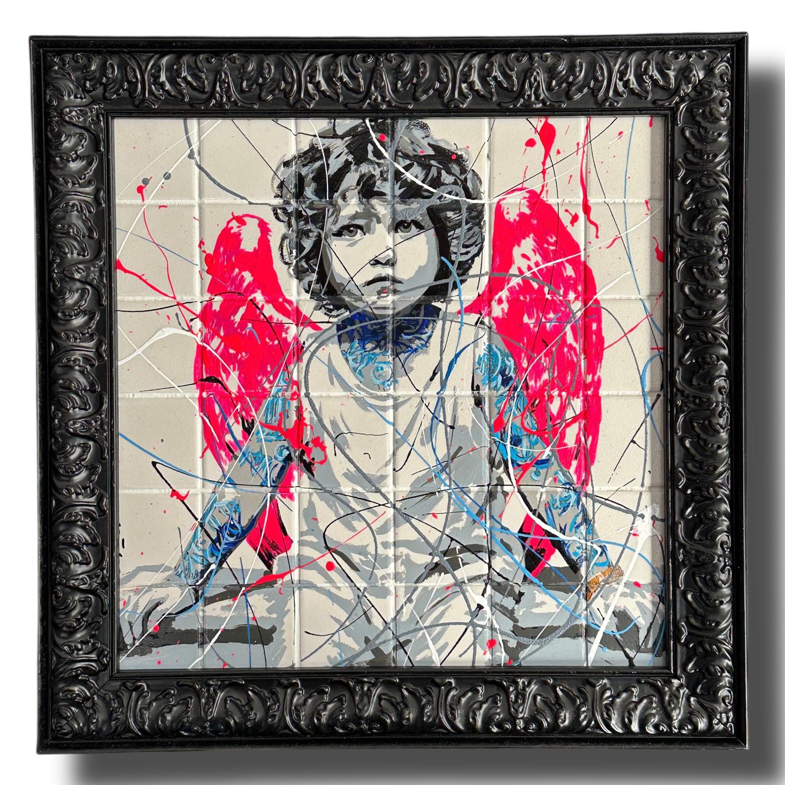 Peinture sur carrelage – Encadrée avec une baguette Baroque 38 x 38 cm- Signée par l’Artiste