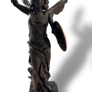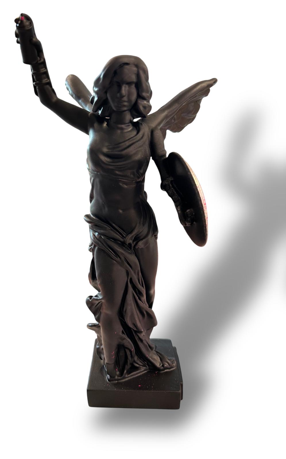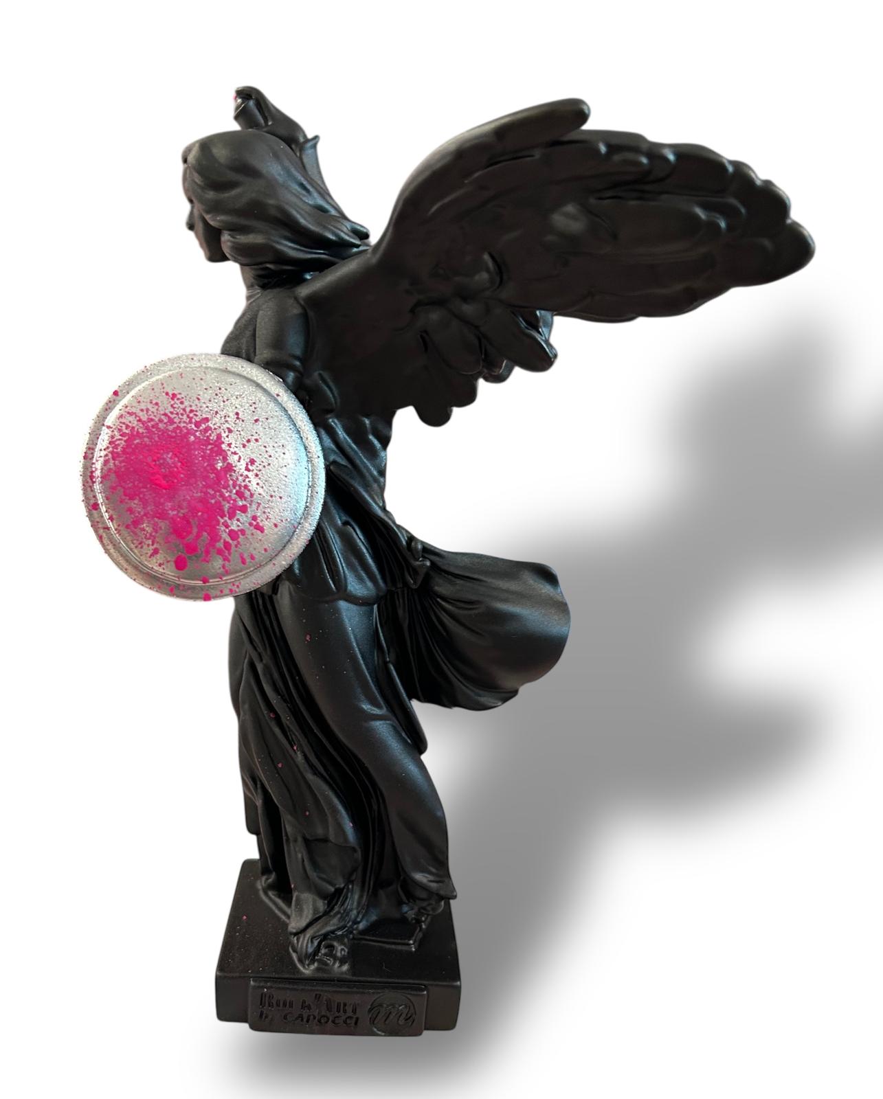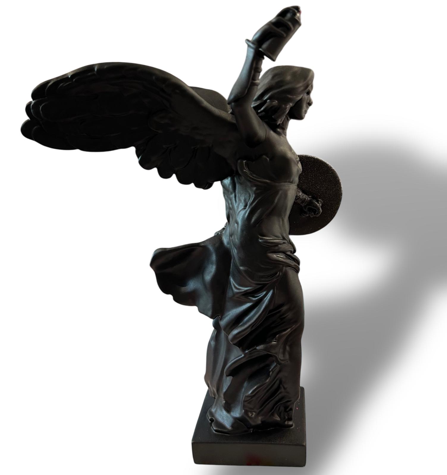 La Victoire by Rock’Art, majestueuse s’impose en femme victorieuse, flamboyante par le choix des couleurs qu’elle arbore. Entièrement réalisée à la main à partir d’un moule. Signée à la main sur le dessous + signature intégrante sur le socle incluant le logo de RMNGP. Pièce graffée Unique