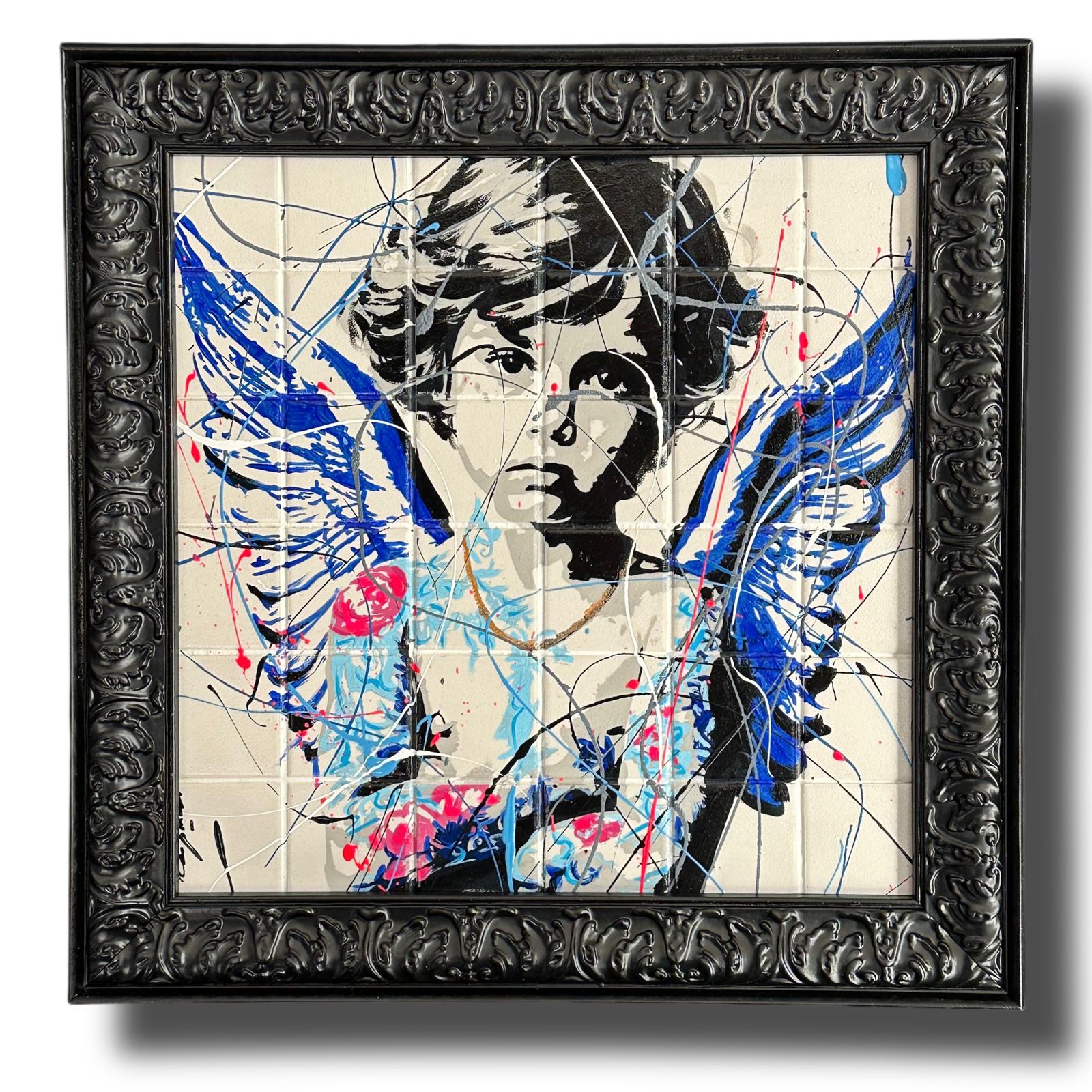 Peinture sur carrelage – Encadrée avec une baguette Baroque 38 x 38 cm- Signée par l’Artiste